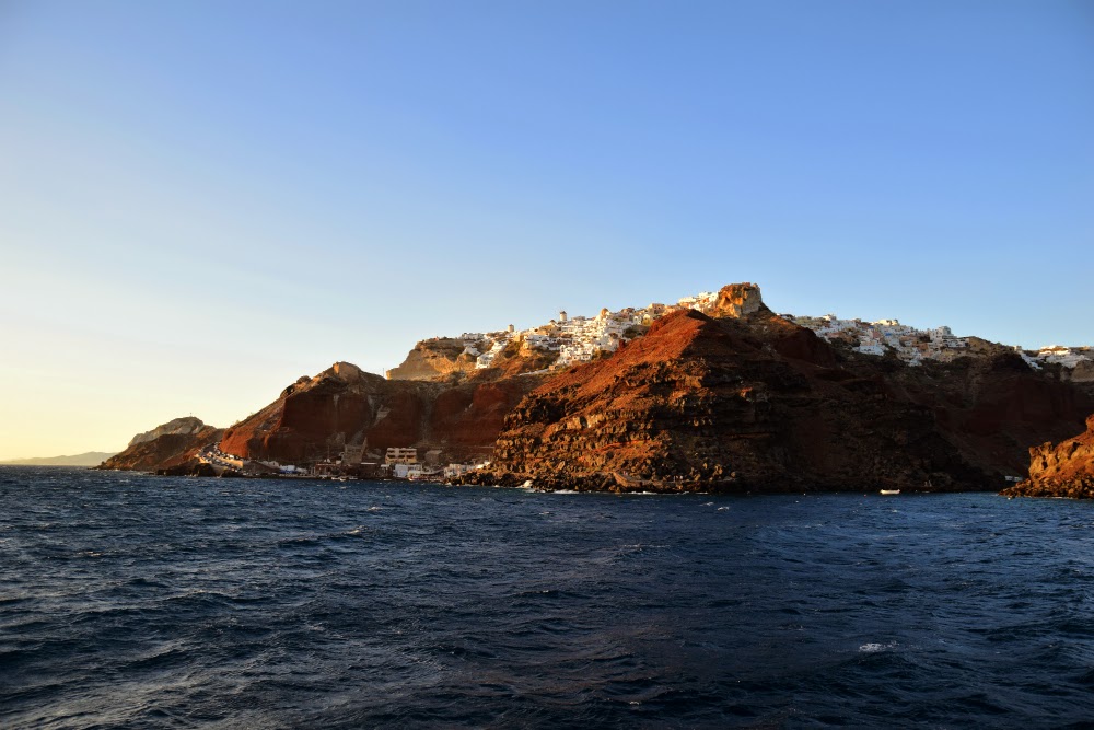 When you’re watching the sunset from a boat, you get to see more than you would from any of the islands – villages lit up in that orange Santorini sunset glow, pink mist and violet haze. It’s as lovely as it sounds and it won’t cost you much more than a nice dinner on the rock.
