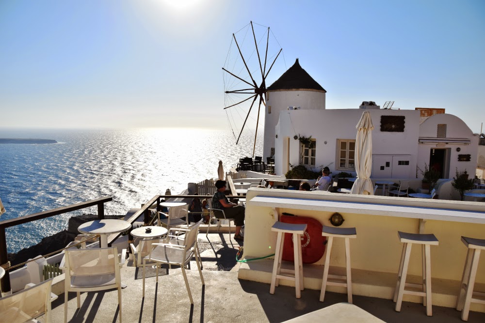 Hordes of tourists besiege the island of Santorini every year, eager to bask in the warm sunshine and the presence of their beloved one. What could be more romantic? Why, sitting down with a glass of something good and watching the sun shyly dip its underbelly into the sea!